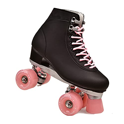 houzz GJHJ Roller Skates Adult Women, Women's Classic Retro 4 Wheels Quad Indoor Outdoor Double-Row for Beginners Grils (Pink, US Women 7)